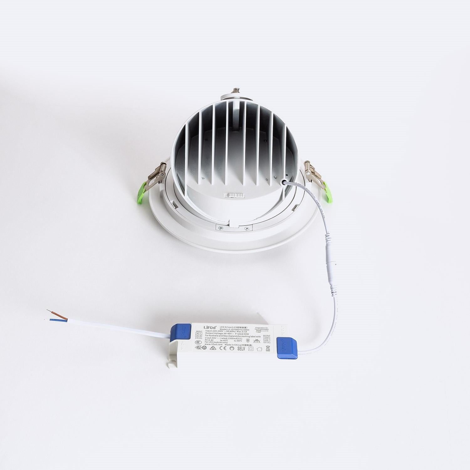 Découvrez notre Downlight LED orientable de 60W, offrant une luminosité exceptionnelle de 7200 lumens avec un rendement lumineux de 120 lm/W, parfait pour un éclairage intérieur efficace et puissant. Fabriqué en aluminium robuste, ce downlight circulaire est conçu pour une installation encastrée, facile à intégrer dans tout type de plafond avec une coupe de Ø 200 mm. Certifié RoHS et CE, il garantit non seulement une qualité et une sécurité maximales mais aussi une durée de vie prolongée de 40 000 heures. L'angle d'ouverture de 60º fournit un éclairage ciblé et réduit l'éblouissement (UGR 17), idéal pour les espaces de travail ou les zones nécessitant une attention particulière à la qualité de lumière. Avec une protection IP20, ce downlight est adapté à tous les intérieurs où l'humidité n'est pas un problème. La source lumineuse OSRAM de qualité supérieure est remplaçable, ce qui augmente la longévité et la flexibilité de votre installation.