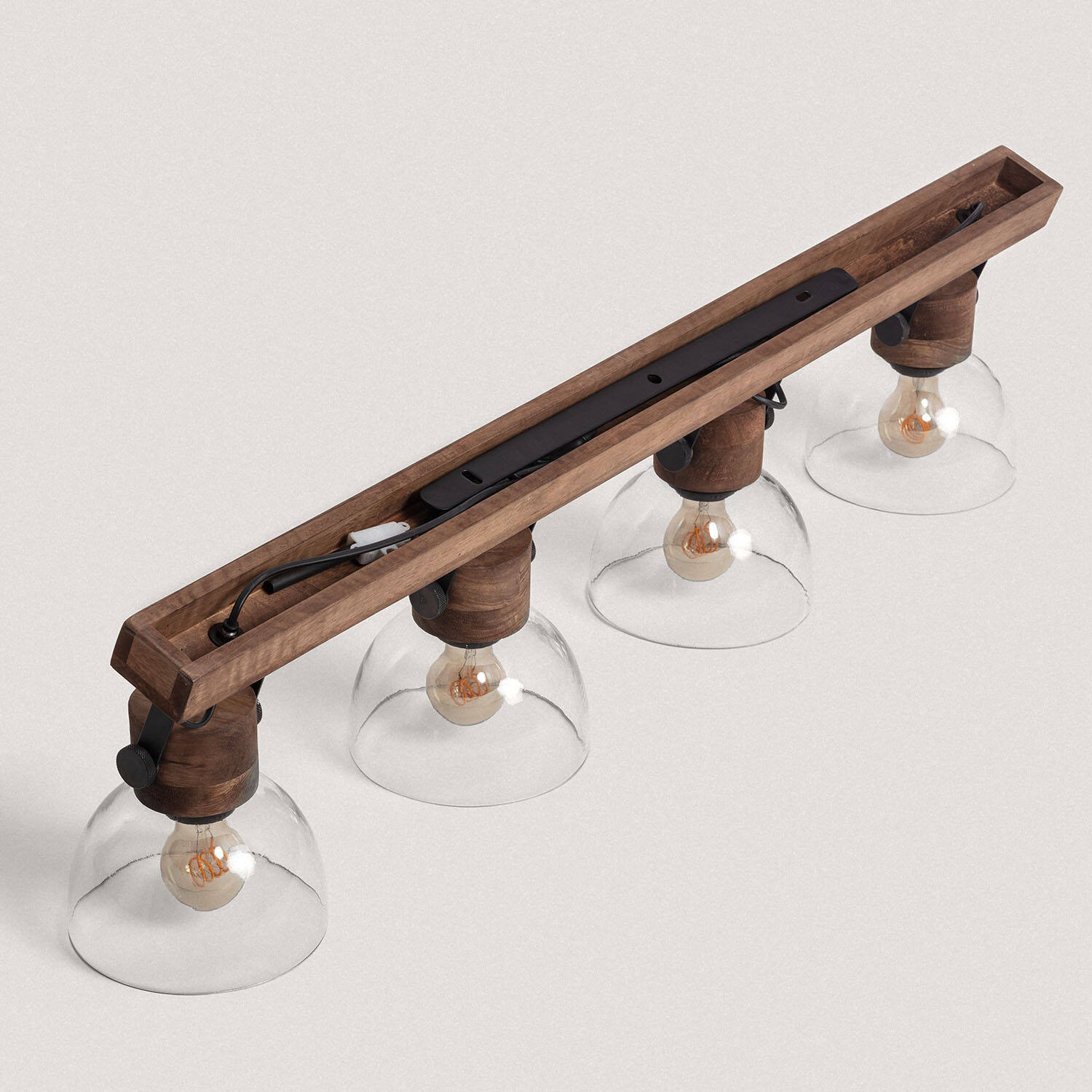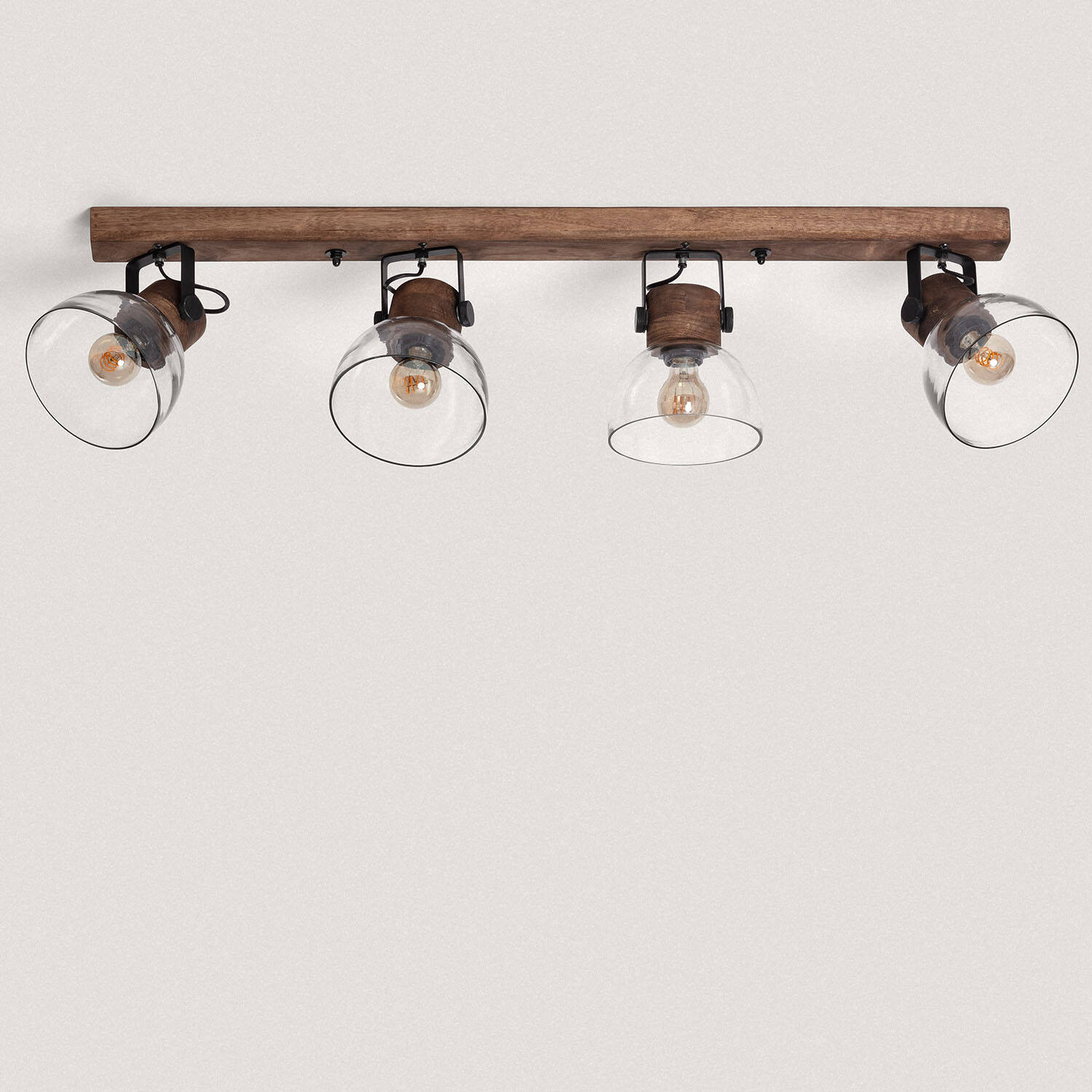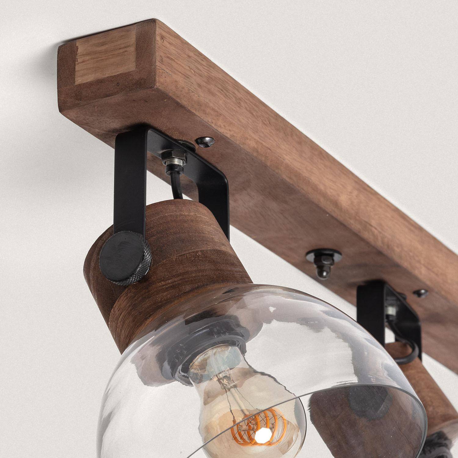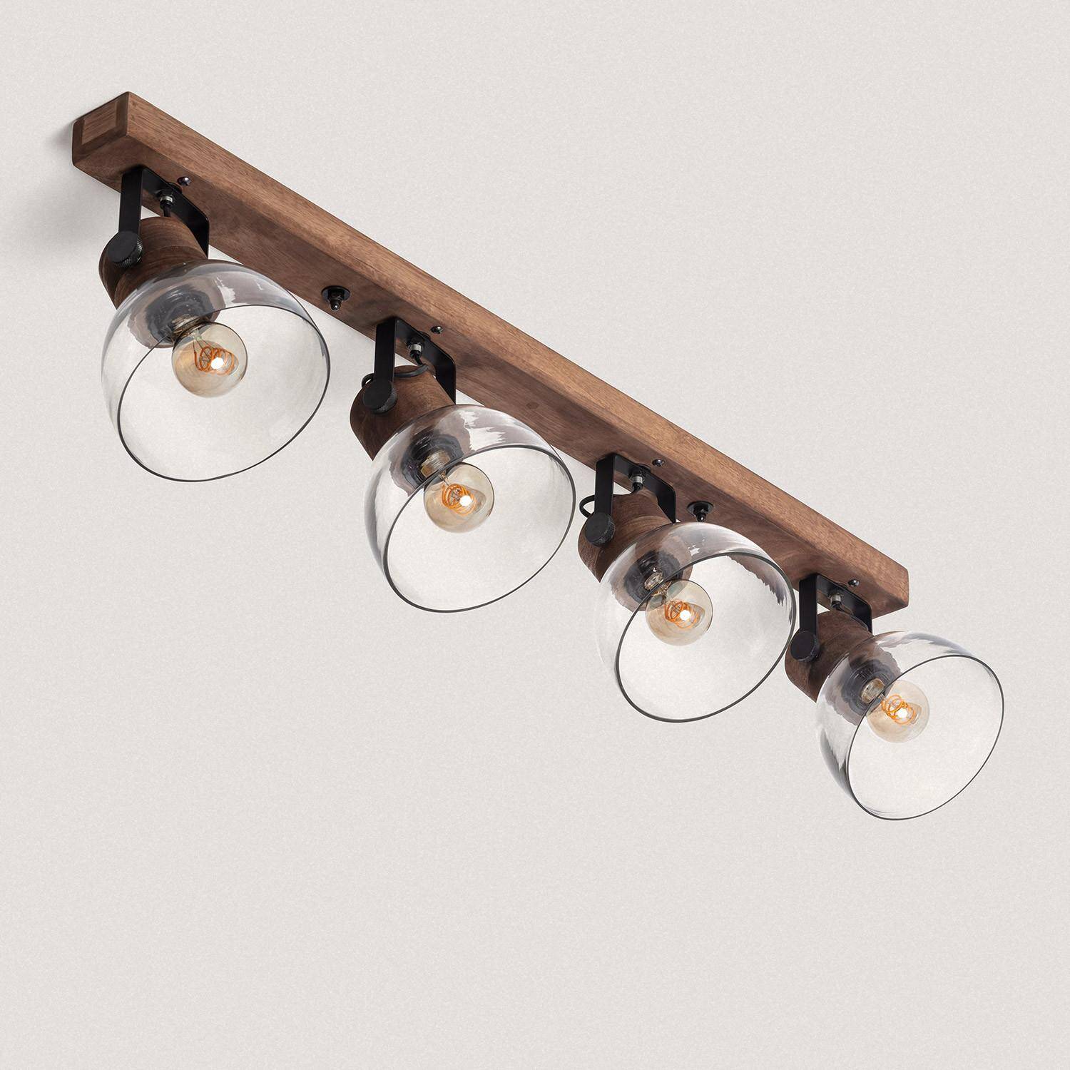 Plafonnier 4 Spots en Bois et Verre, IP20, 40W, Installation en Saillie