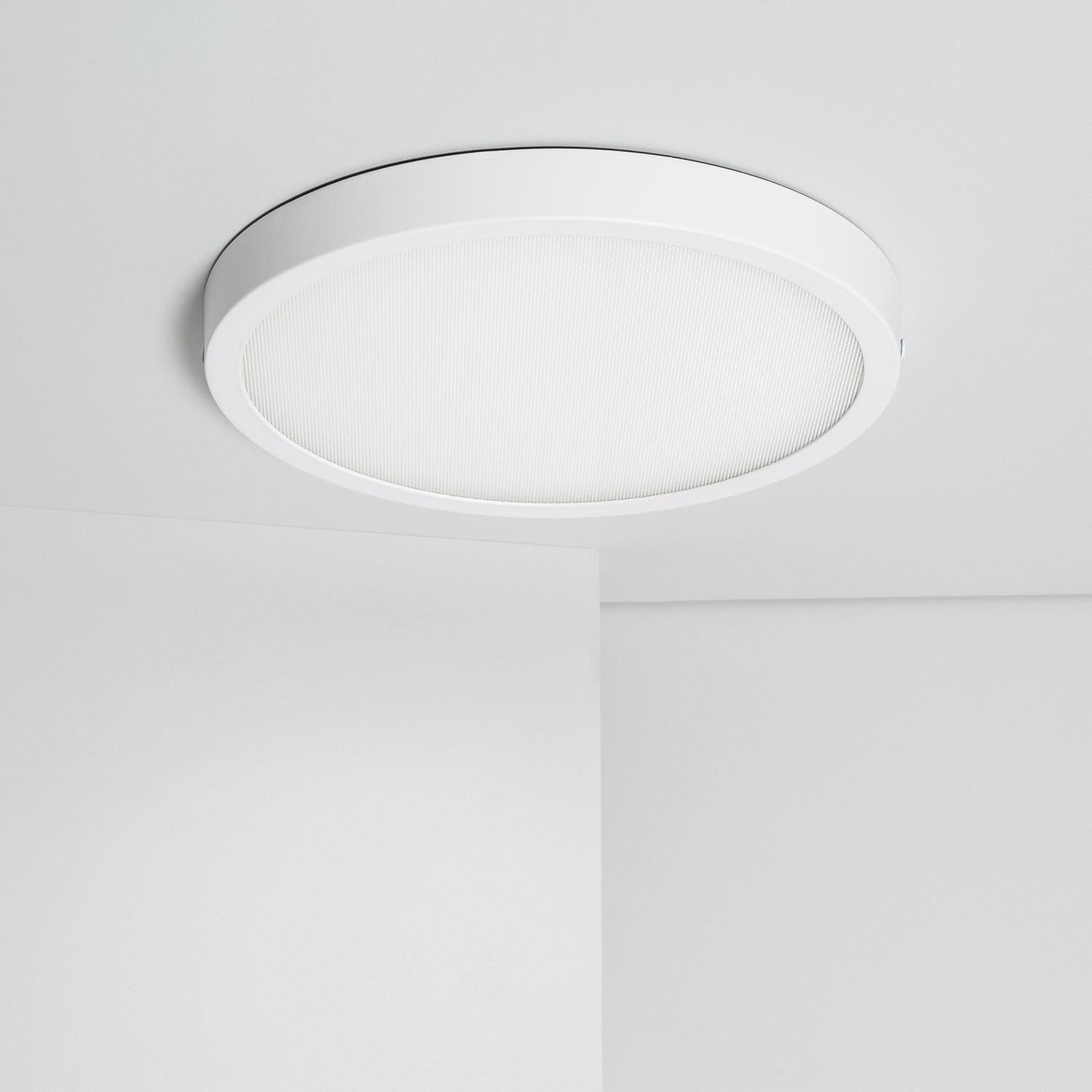Découvrez notre plafonnier LED rond de 24W, conçu pour un éclairage intérieur efficace et durable. Avec un indice de protection IP20 et une durée de vie impressionnante de 40.000 heures, ce plafonnier est idéal pour des installations en saillie dans des bureaux, des couloirs ou des espaces résidentiels. Sa finition opale et son angle d'ouverture de 120º offrent une diffusion lumineuse homogène et confortable. Fabriqué en aluminium robuste avec une protection IK05, ce produit garantit à la fois sécurité et qualité, certifié par RoHS, CE et UKCA. Profitez d'un éclairage de haute qualité avec un indice de reproduction chromatique (IRC) de 90, assurant une restitution fidèle des couleurs.